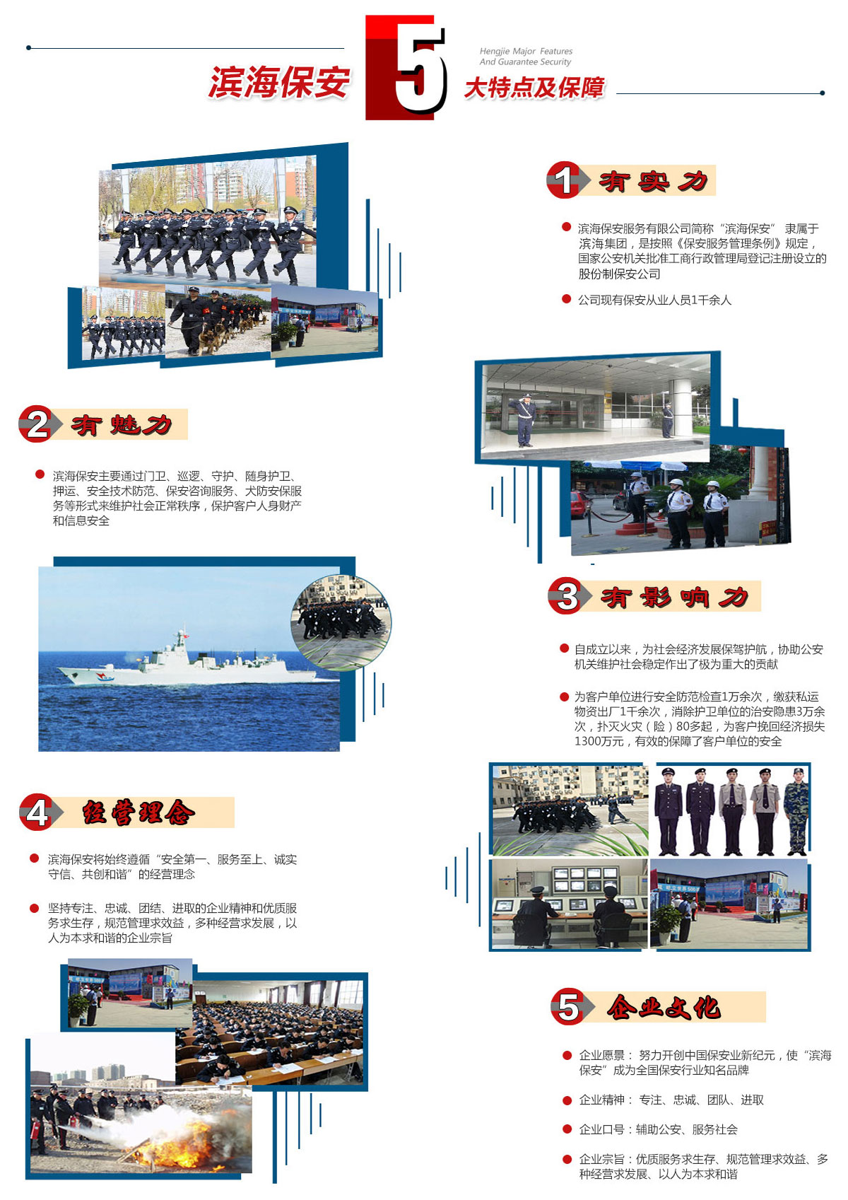 山東濱海保安服務(wù)有限公司簡(jiǎn)稱“濱海保安” 隸屬于濱海集團(tuán),是按照《保安服務(wù)管理?xiàng)l例》規(guī)定,國(guó)家公安機(jī)關(guān)批準(zhǔn)工商行政管理局登記注冊(cè)設(shè)立的股份制保安公司。